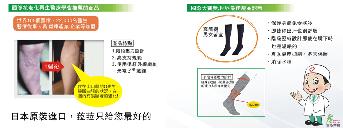 由國際抗衰老協會推薦LaLa BiBi商品,國際抗衰老協會的目的是增加人類的健康,此商品是將會改善患者的生活質量。LaLa BiBi產品是調整型內衣,它成為國際抗衰老協會推薦的產品。